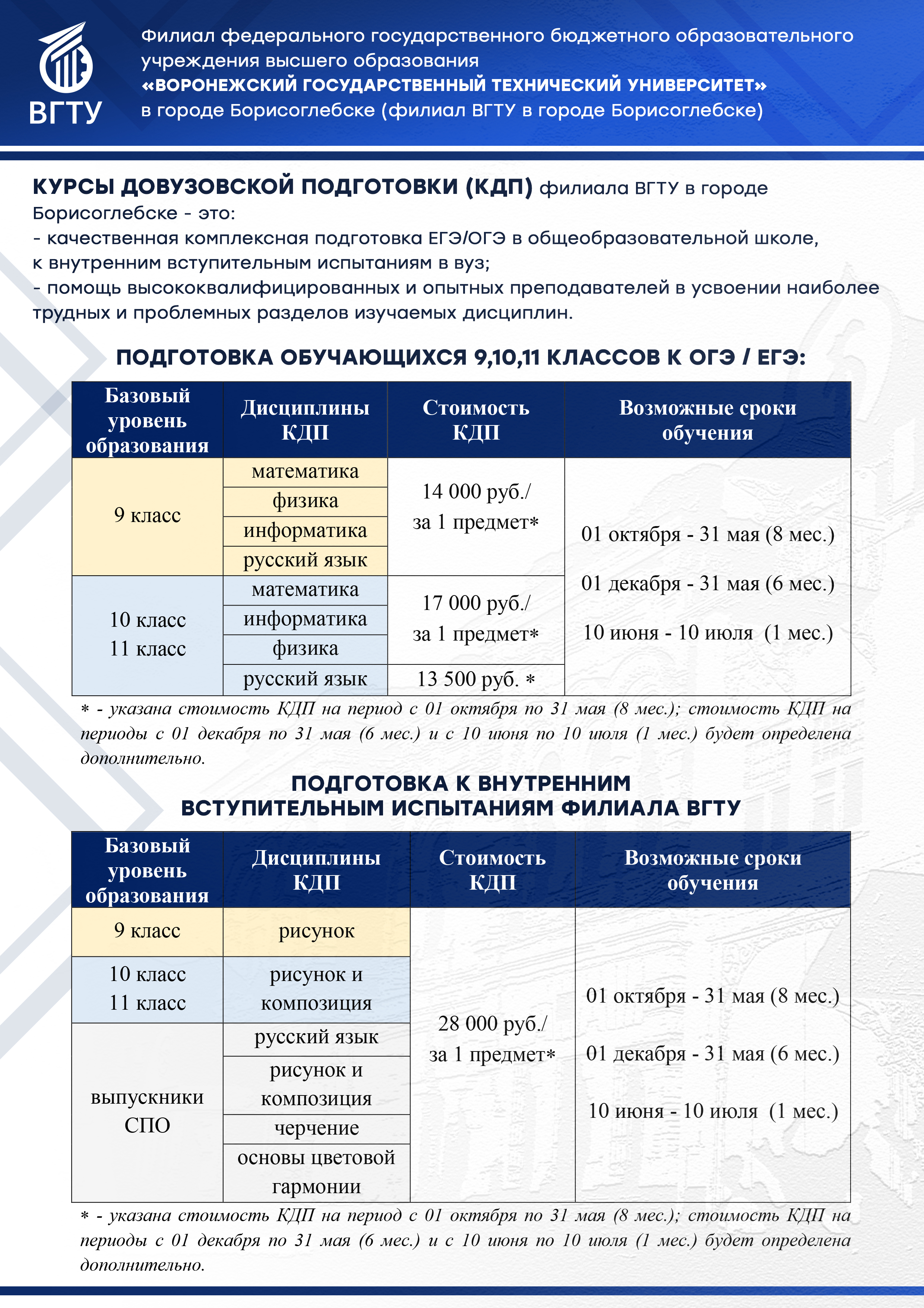 ФИЛИАЛ ВГТУ В ГОРОДЕ